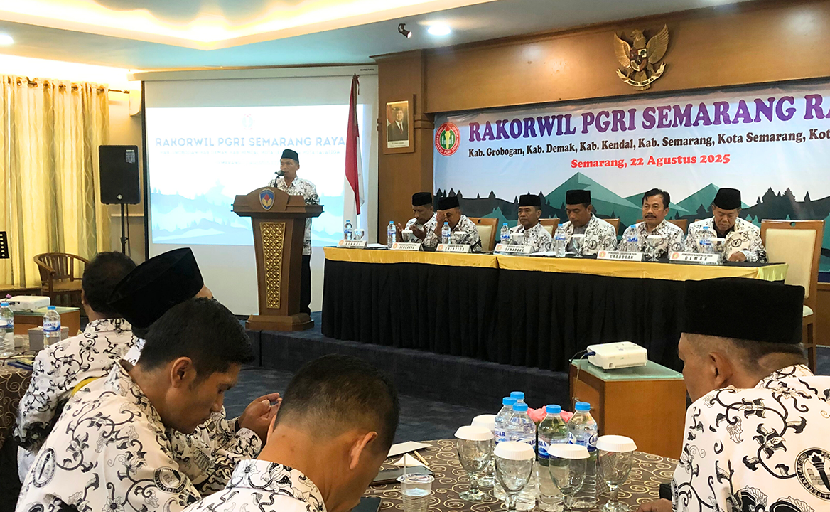 [Jum'at, 22 Agustus 2025] "Rapat Koordinasi Wilayah PGRI Semarang Raya yang meliputi Kabupaten Grobogan, Kabupaten Demak, Kabupaten Kendal, Kota Semarang, dan Kota Salatiga telah dilaksanakan pada Jum’at, 22 Agustus 2025, bertempat di Wisma P4G Universitas PGRI Semarang Kampus 2, Jl. Sriwijaya, Kota Semarang. Kegiatan ini berjalan dengan baik dan lancar."