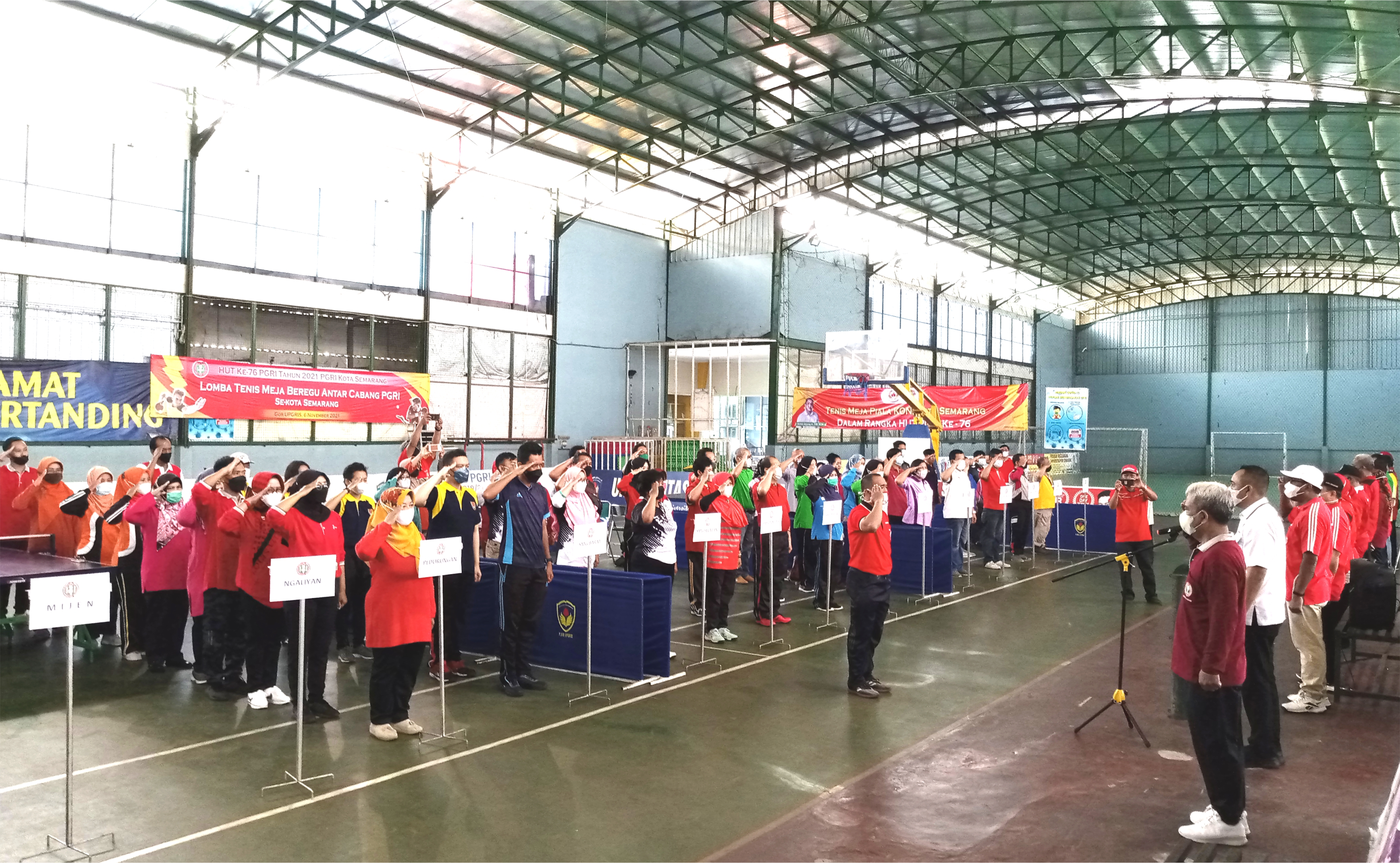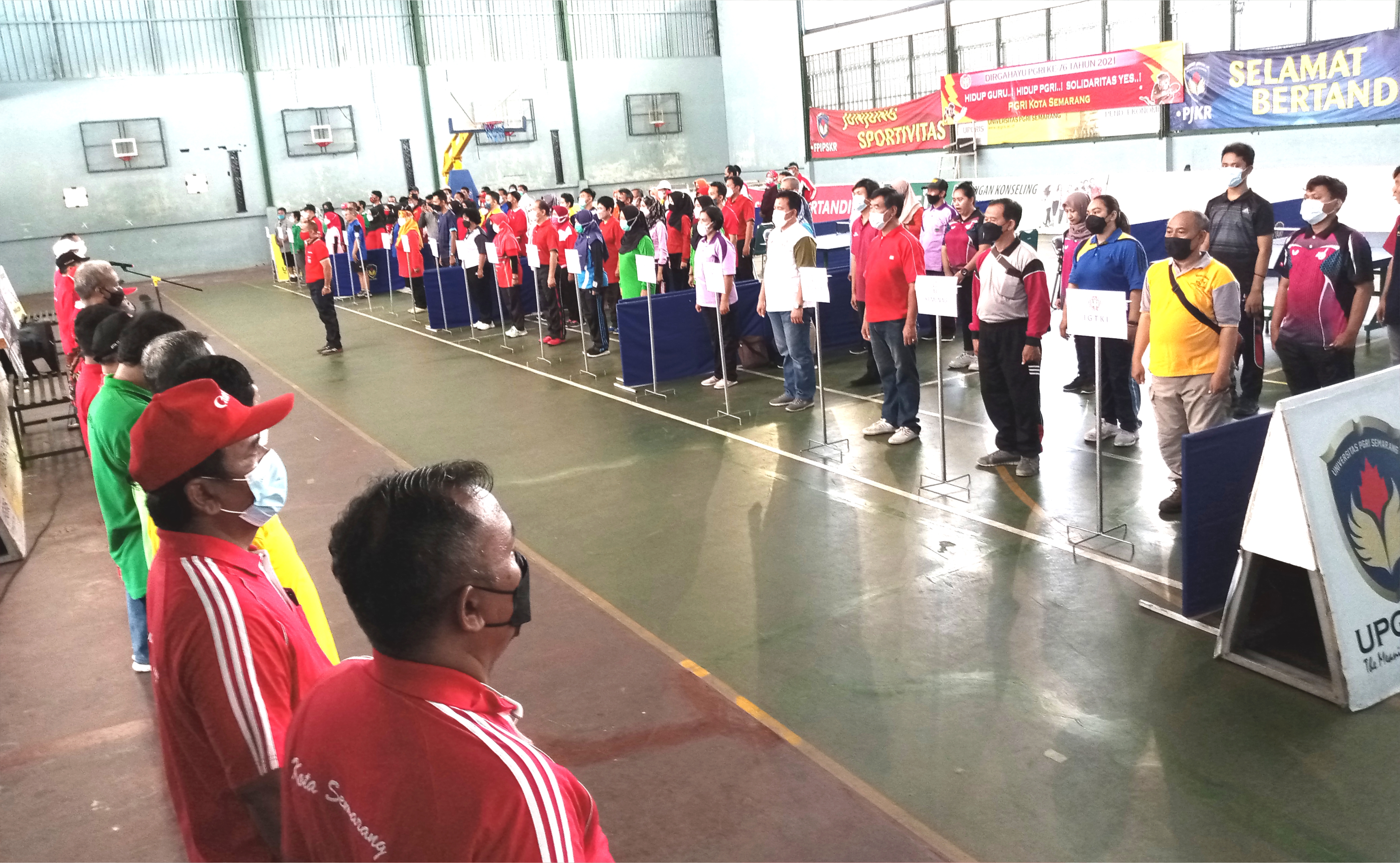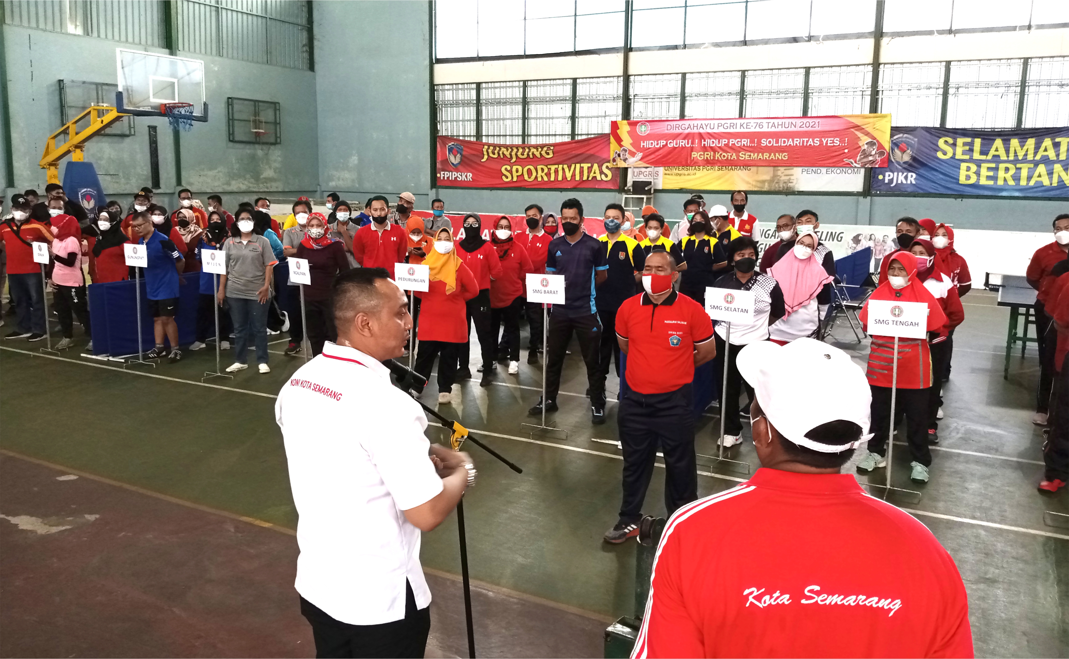 [Sabtu, 6 November 2021] Lomba Tenis Meja Piala Koni Kota Semarang dalam rangka HUT PGRI ke-76 tahun 2021 yang dihadiri sekaligus membuka acara oleh Ketua Koni Kota Semarang yakni Bapak Arnaz Agung Andrarasmara, S.E., M.M. di GOR Kampus 4 Universitas PGRI Semarang.