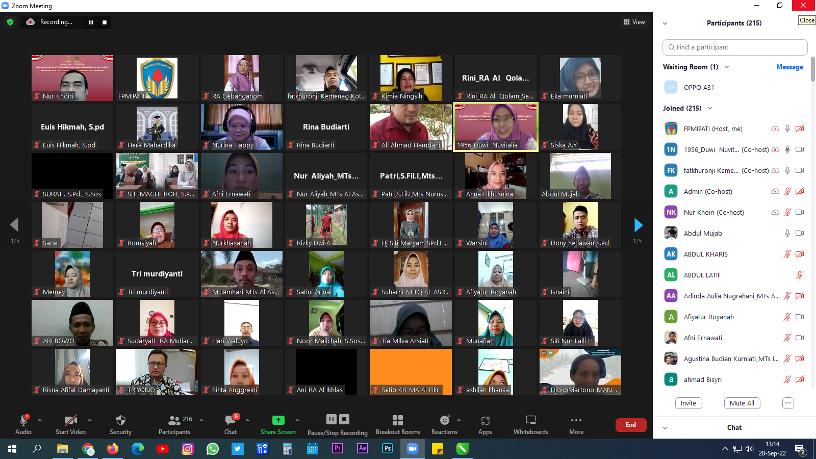[Rabu, 28 September 2022] Pendidikan dan Pelatihan Pemanfaatan Platform Merdeka Mengajar dengan Belajar.id. Kerjasama PGRI Kota Semarang dengan KEMENAG Kota Semarang.