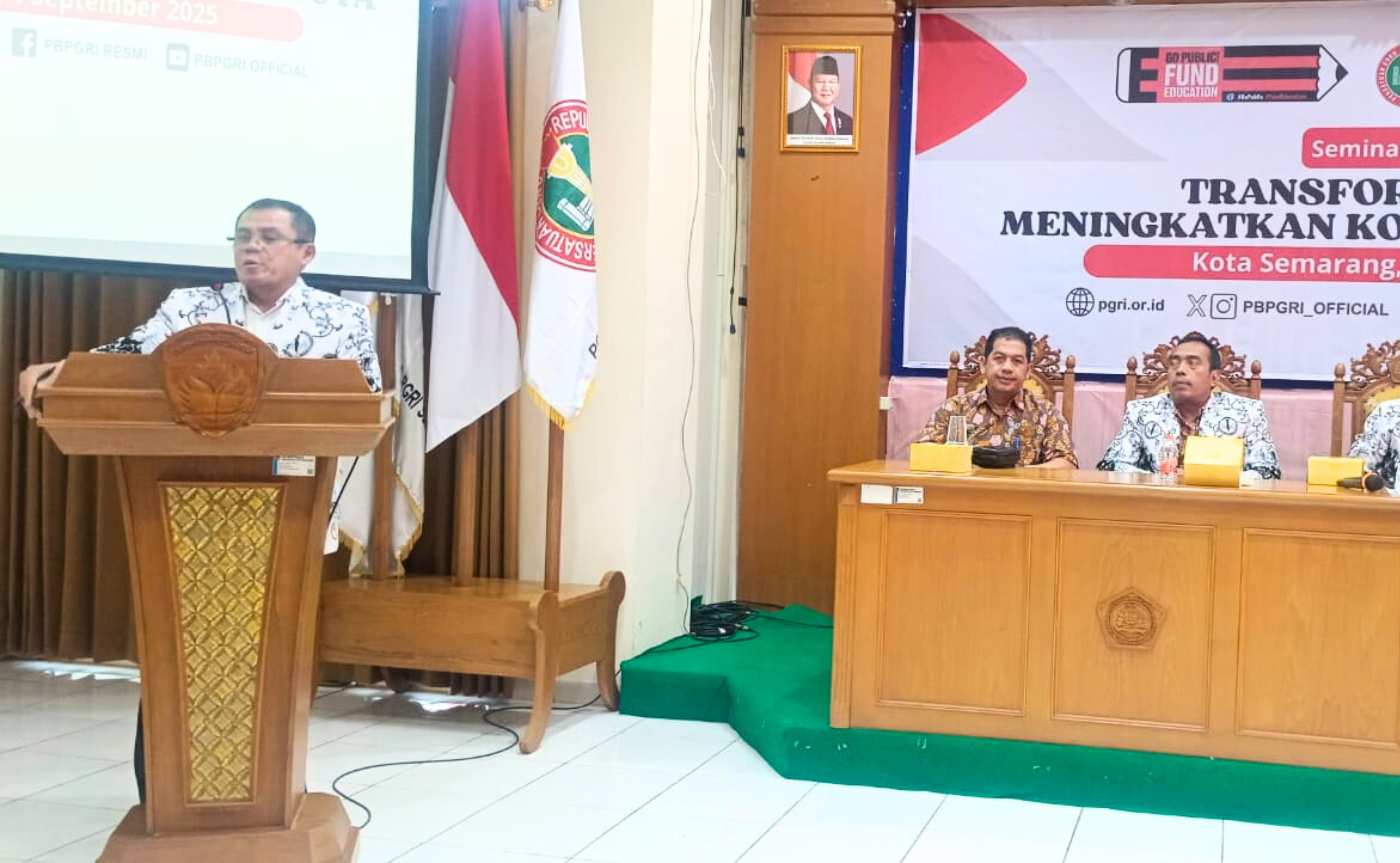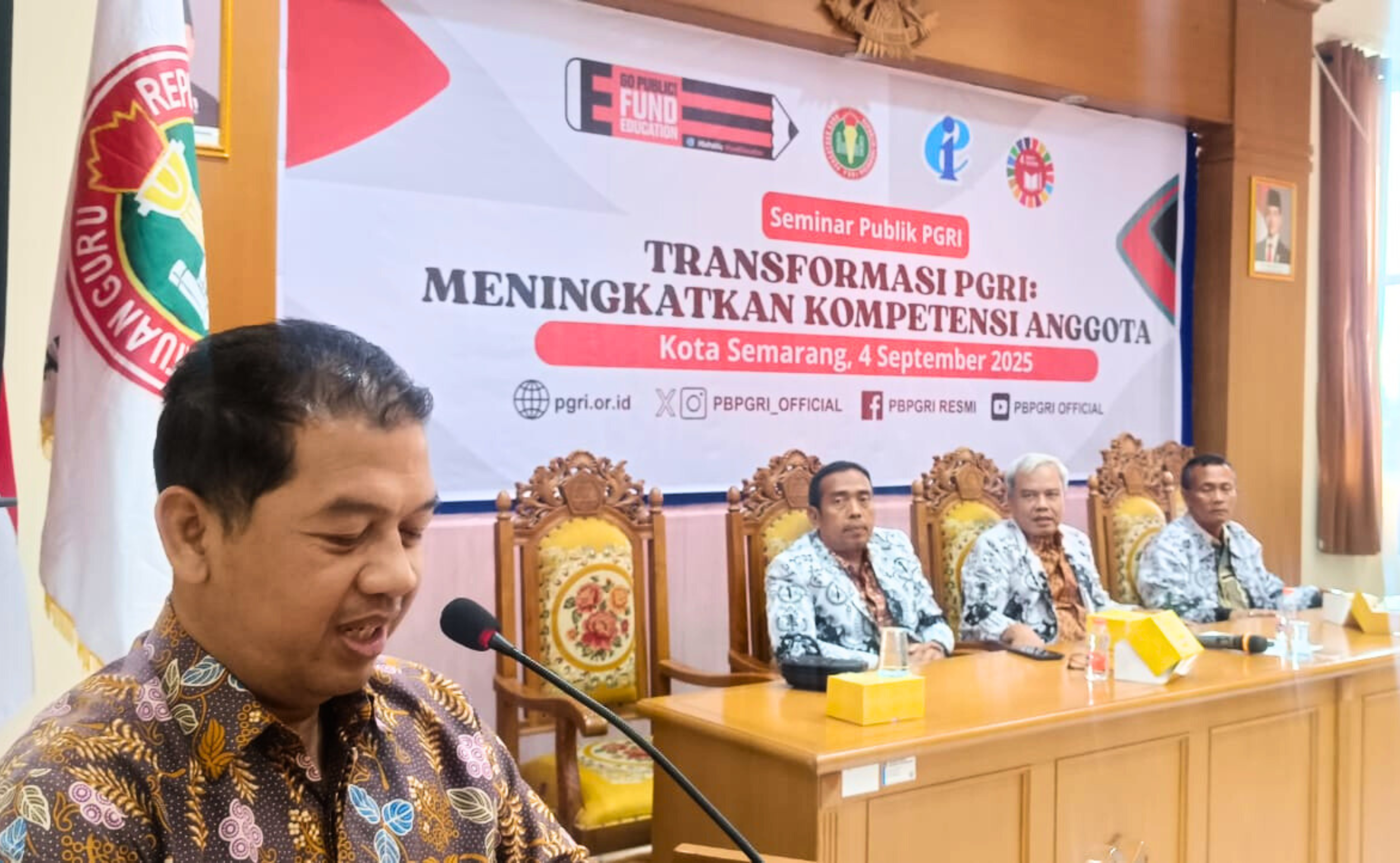 [Kamis, 4 September 2025] Kegiatan Seminar Publik PGRI mengusung tema "Transformasi PGRI: Meningkatkan Kompetensi Anggota" dilaksanakan di Gedung Pascasarjana Lantai 5 Universitas PGRI Semarang.
